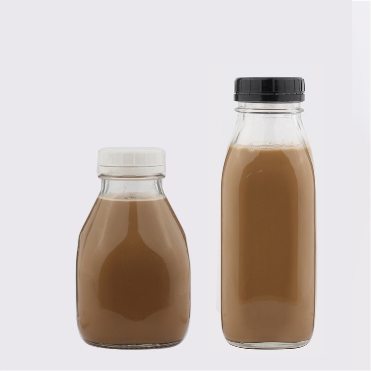 Revitalize your dairy or beverage brand with our clear square glass milk bottles, available in convenient 8oz and 16oz sizes. The distinctive square shape provides excellent shelf stability and a modern, nostalgic aesthetic that stands out in the cold case. Each bottle comes sealed with a food-safe Polypropylene (PP) tamper-evident cap, ensuring product integrity and safety from production to consumer. The clear, sturdy glass preserves freshness and showcases the natural color and purity of your product.
