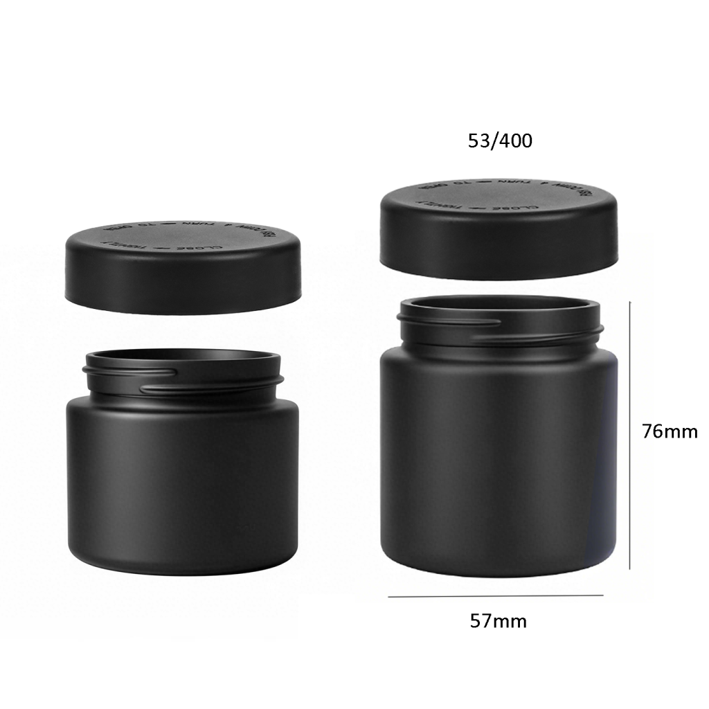 Engineered for ultimate light protection and child-resistant safety, our 4oz black painted CRc glass jars provide complete opacity combined with certified child-resistant functionality. The durable black painted exterior offers 100% UV light blocking, ensuring optimal preservation of light-sensitive cannabis products. These jars feature a push-and-turn child-resistant cap providing secure access control while maintaining ease of use for adults. The straight-sided design maximizes labeling space and ensures stable stacking, making them ideal for dispensary shelves and consumer storage.