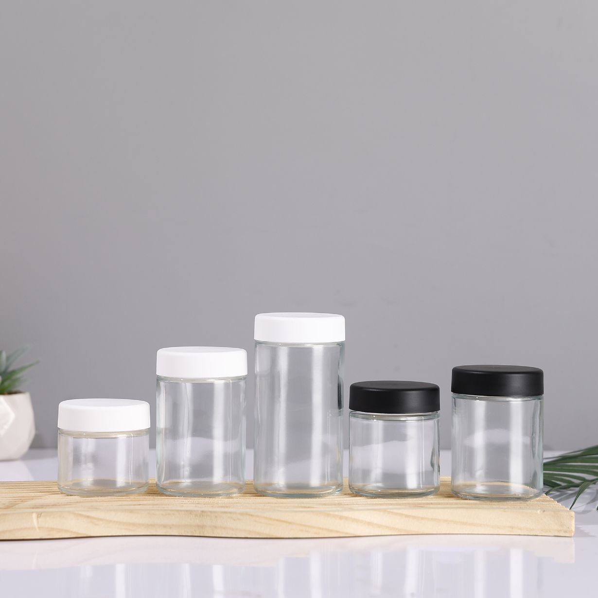 Clear CR Glass Cannabis Jar with Child Resistant Cap – Dia 57mm White Cap