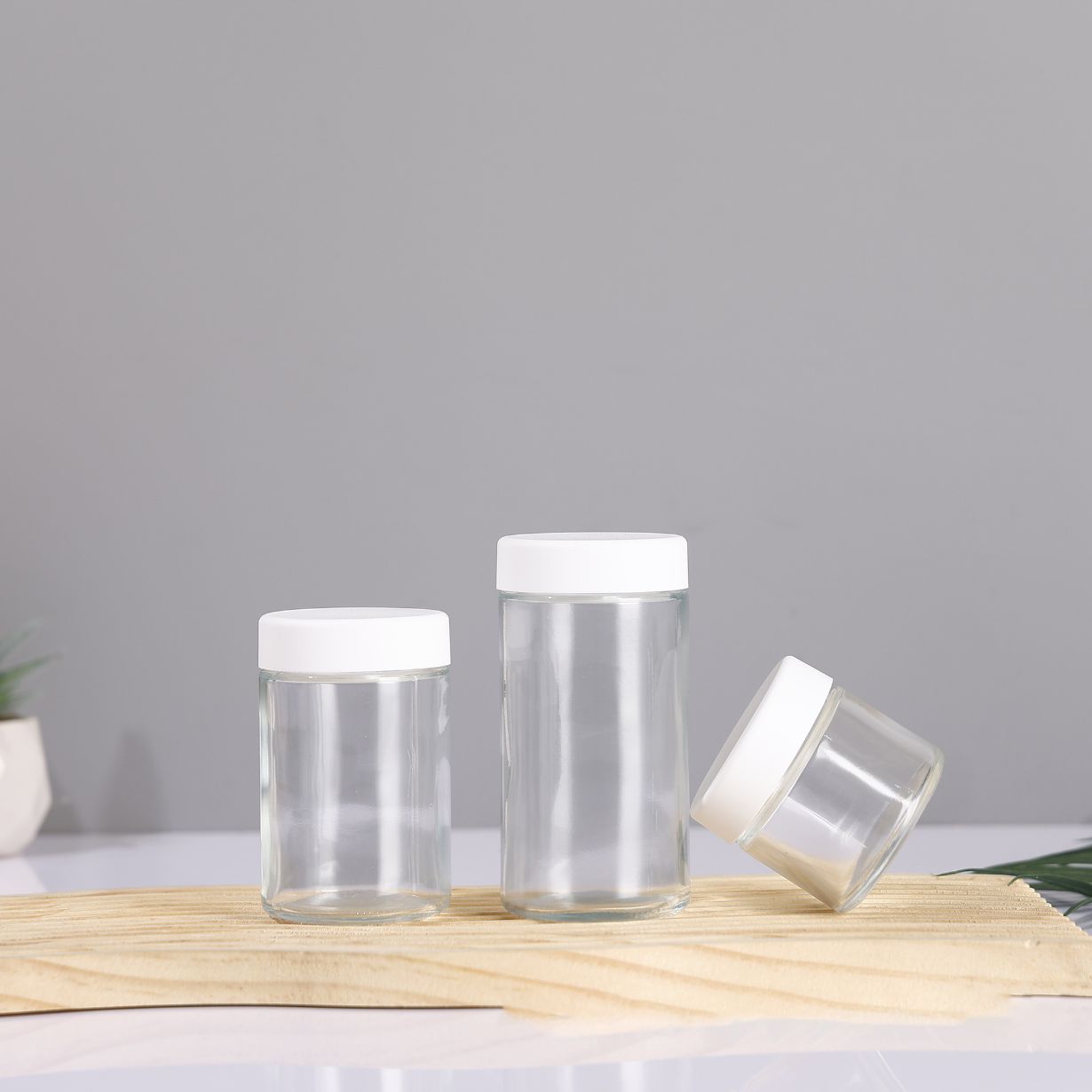 Engineered for premium product visibility and safety, our clear CR glass cannabis jars feature a 57mm diameter design with a contrasting white child-resistant cap. The crystal-clear flint glass provides optimal product presentation, allowing customers to view the quality of your cannabis flower while the white CR cap offers a clean, modern aesthetic. The push-and-turn child-resistant mechanism ensuring safety without compromising accessibility. The straight-sided design enables secure stacking and provides ample space for branding and compliance labeling.