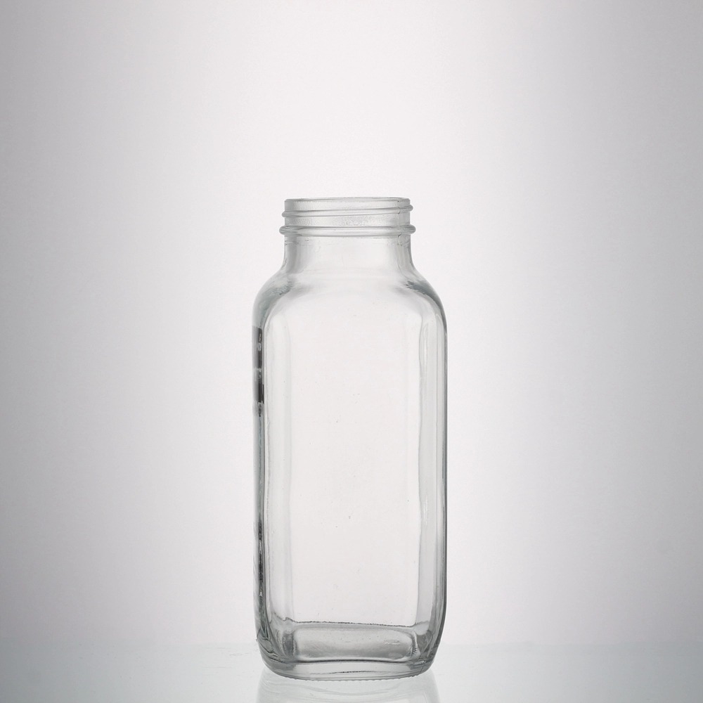 Custom Logo Printing French Square 16oz Glass Coffee Milk Tea Bottles