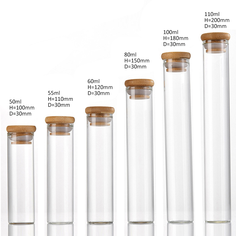 Engineered for premium product presentation and sustainability, our Dia30mm flat bottom glass test tubes combine laboratory-grade borosilicate glass with eco-friendly bamboo lids to create sophisticated packaging for pre-rolls and other products. The tubes feature a precise 30mm internal diameter with a stable flat bottom design, allowing them to stand upright for easy filling, storage, and display. The clear borosilicate glass offers exceptional clarity (92% light transmittance) and chemical resistance, while the natural bamboo lids provide an airtight seal and sustainable appeal. These tubes are ideal for brands seeking eco-conscious packaging without compromising on quality or functionality.