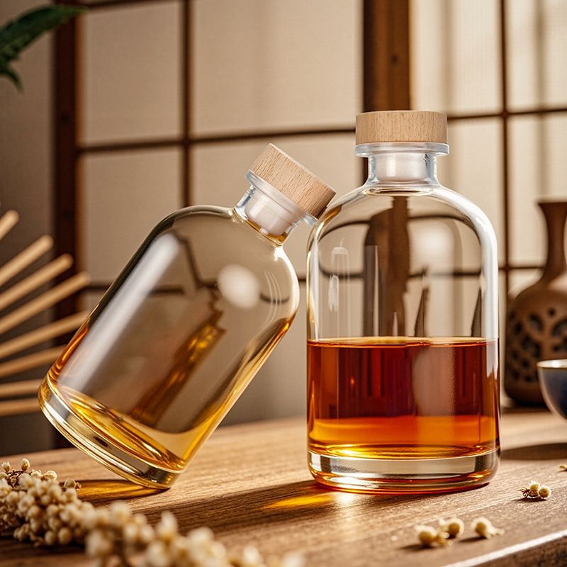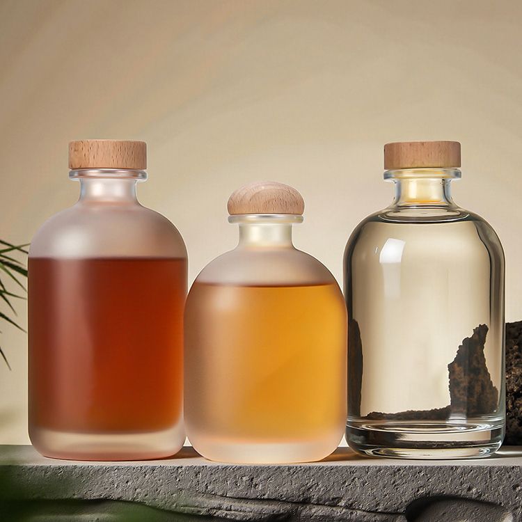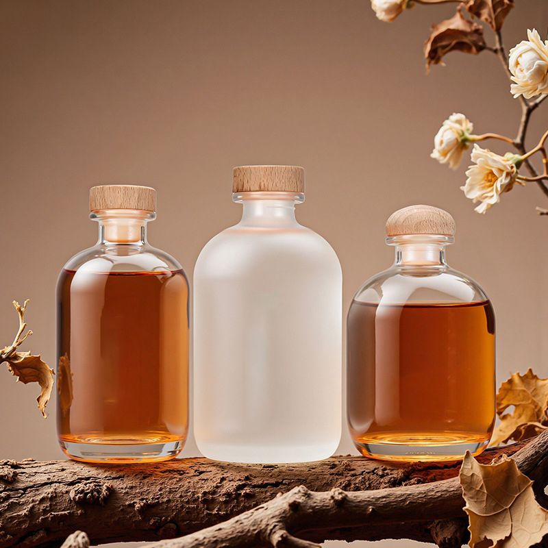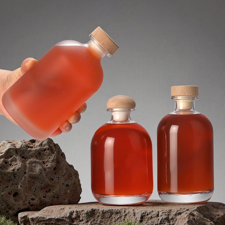 FOYAGLASS presents our premium Round Clear Frosted Glass Bottle collection, available in 100ml, 250ml, 375ml, and 500ml sizes. Designed for vodka, wine, and craft spirits, these elegant bottles feature a sophisticated frosted finish and come with natural cork stoppers for an upscale presentation.