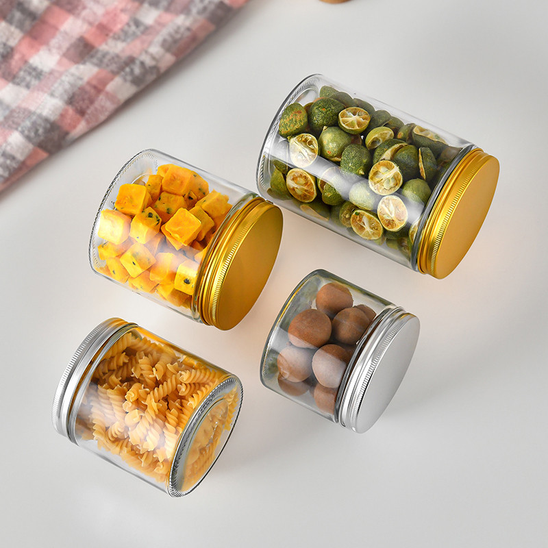 Reusable Round Glass Food Jars with Airtight Metal Lid for Jelly Cookies Sugar Spices
