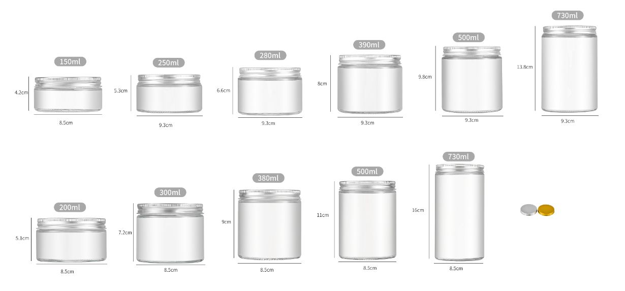 FOYAGLASS presents high-quality round glass spice jars with airtight metal screw caps, designed for optimal food storage. Available in 150ml to 730ml sizes, these transparent glass jars are perfect for storing spices, sugar, cookies, jelly, tea, coffee, dried herbs, and more. The durable metal lid ensures long-lasting freshness and prevents moisture, odors, and contaminants.