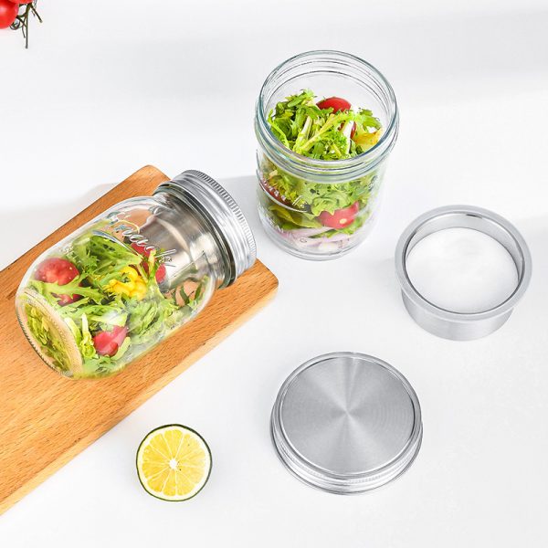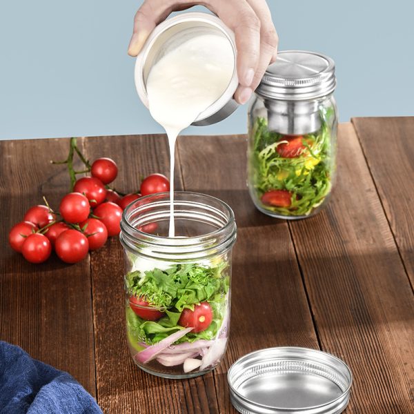 Elevate meal preparation with our innovative Stainless Steel Salad Dressing Divider Lid, engineered to keep dressings and toppings separate until ready to serve. Crafted from premium 304 stainless steel, this dual-compartment lid features a removable 3oz divider cup that fits snugly within the lid assembly. Perfect for Mason jar salads, the design allows dry ingredients to stay crisp while keeping dressing contained. The leak-proof silicone seal ensures zero spillage, making it ideal for packed lunches, picnics, or fresh-to-go meals.