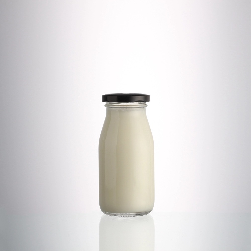 Cater to the premium single-serve and sampling market with our wholesale round 200ml milk glass bottles, sealed with a classic metal lid. This compact size is perfect for individual portions of fresh milk, cream, specialty coffee additives, or plant-based alternatives, offering convenience without sacrificing quality presentation. The durable metal lid provides a secure, airtight seal to preserve freshness, while the clear round glass showcases the purity and color of your product.